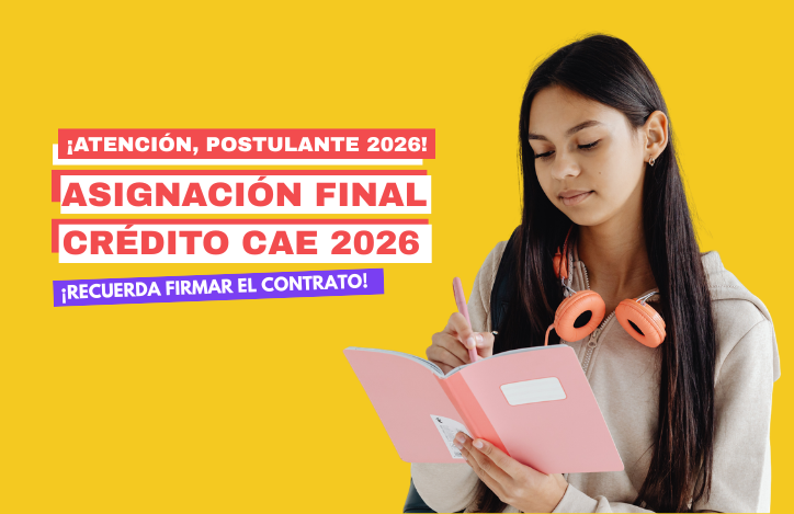 Si solicitaste los Beneficios Estudiantiles del Estado en octubre/noviembre 2025 o en febrero/marzo 2026, y estás seleccionado/a o preseleccionado/a con el Crédito con Garantía Estatal (Crédito CAE), tu mensaje de asignación de www.ingresa.cl se actualizará el MARTES 09 DE JUNIO 2026, incorporando, si corresponde, las indicaciones para firmar el contrato del financiamiento.